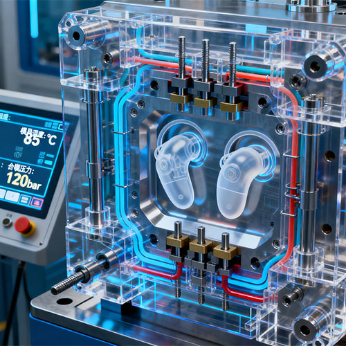 Le moulage par injection de plastique d'appareils auditifs est une technique de traitement du plastique dans laquelle une matière plastique fondue est injectée sous haute pression dans une cavité conçue avec précision d'un moule d'appareil auditif. Une fois le plastique refroidi et solidifié, le moule est ouvert pour retirer les composants de l’aide auditive. Grâce à ce processus, il est possible de produire des composants en plastique d’aides auditives ayant exactement la même forme que la cavité du moule.